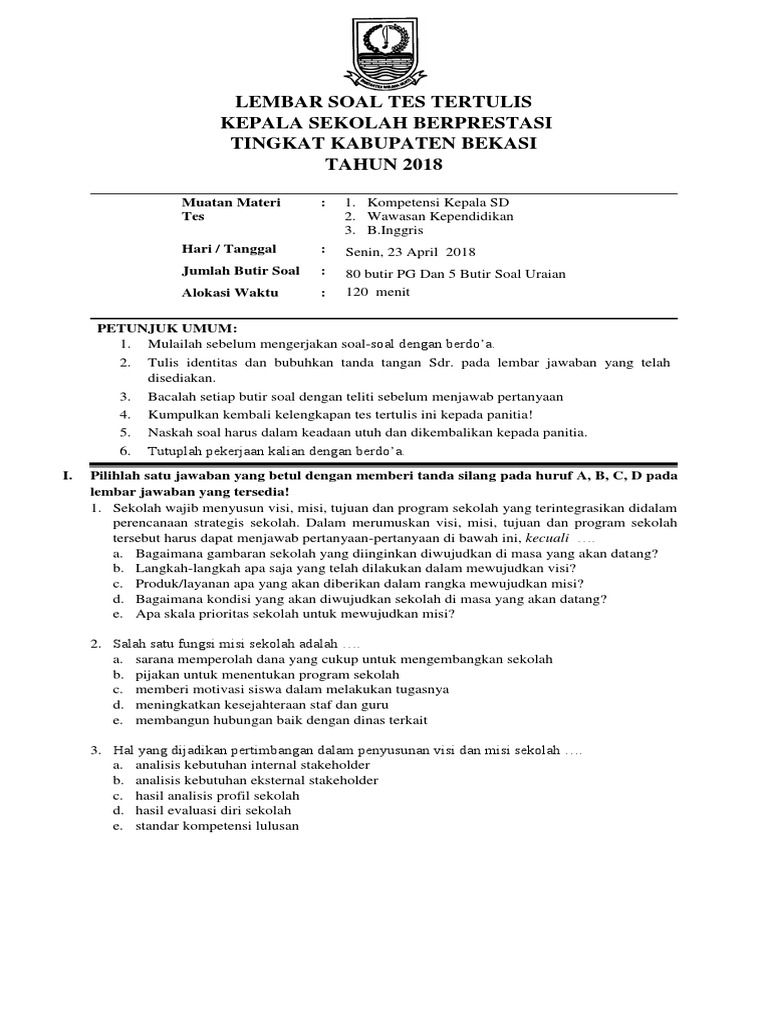 Soal akg akkwahana informasi kepala sekolah guru dan. Soal tes kepala sekolah berprestasi sma 2016. Sunday, january 27, 2019 edit. Berikut ini adalah download silabus dan rpp kurikulum 2013 sd mismp mtssma smk ma semester 1 lengkap yang merupakan kumpulan file dari berbagi sumber 2017 tentang soal dan jawaban kepala sekolah berprestasi. Materi soal kepala sekolah berprestasi.